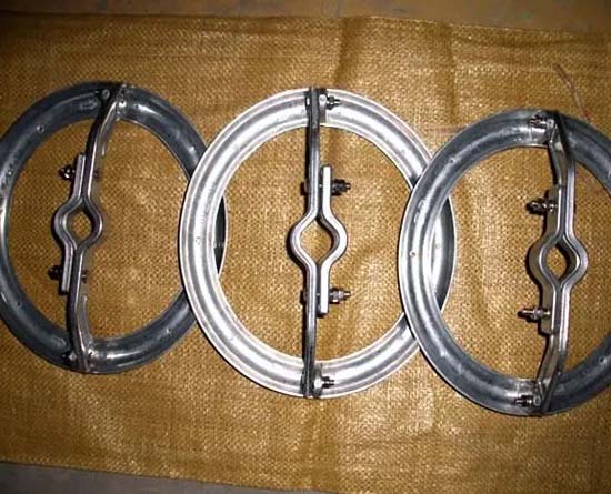均压环![]() 1、按作用及结构可分为悬垂线夹、耐张线夹、UT线夹、连接金具、接续金具、保护金具、设备线夹、T型线夹、母线金具、拉线金具等类别;按用途可用为线路金具和变电金具。 2、按电力金具产品单元划分为可锻铸铁类、锻压类、铝铜铝类和铸铁类,共四个单元。 3、还可分为国标与非国标 4、按金具的主要性能和用途,金具大致可分为以下几类 1)、悬吊金具,又称支持金具或悬垂线夹。这种金具主要用来悬挂导线绝缘 子串上(多用于直线杆塔)及悬挂跳线于绝缘子串上。 2)、锚固金具,又称紧固金具或耐线线夹。这种金具主要用来紧固导线的终端,使其固定在耐线绝缘子串上,也用于避雷线终端的固定及拉线的锚固。锚固金具承担导线、避雷线的全部张力,有的锚固金具变作为导电体 3)、连接金具,又称挂线零件。这种金具用于绝缘子连接成串及金具与金具的连接。它承受机械载荷。 4)、接续金具。这种金具于接续各种裸导线、避雷线。接续承担与导线相同的电气负荷,大部分接续金具承担导线或避雷线的全部张力。 5)、防护金具。这种金具用于保护导线、绝缘子等,如保护绝缘子用的均压环,防止绝缘子串上拔用的重锤及防止导线振动用的防振锤、护线条等 。 |